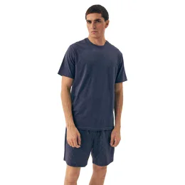 Pánske pyžamo 42601 Shore light blue HENDERSON - vyrobené z kvalitnej bavlny - svetlomodré tričko s krátkymi rukávmi - vzorované šortky - elastický pás so šnúrkou na stiahnutie