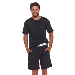 Pánske pyžamo 4332 čierne Doctornap - vyrobené z kvalitnej bavlny - čierne tričko s krátkymi rukávmi - vrecko na prednej strane - dlhšie šortky v čiernej farbe - zapínanie v rozkroku - elastický pás s nápisom - certifikát OEKO-TEX Standard 100
