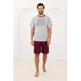 Zestaw składa się z koszulki z krótkim rękawem i okrągłym dekoltem, zapewniającym swobodę i klasyczny wygląd. Przód koszulki został ozdobiony estetycznym nadrukiem, który nadaje piżamie nowoczesnego charakteru. Uzupełnieniem są krótkie, jednolite spodenki, idealne na cieplejsze:
