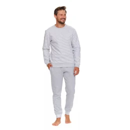Pánske pyžamo 5248 Doctor Nap - vyrobené z kvalitnej a príjemnej bavlny - sivé tričko s dlhými rukávmi - zdobené prúžkami - dlhé sivé nohavice s vreckami - materiálové zloženie trička: 80% bavlna + 20% polyester - certifikát OEKO-TEX Standard 100