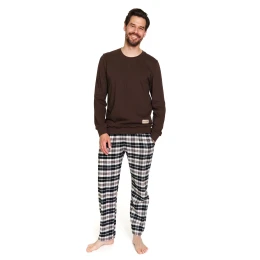 Pánske pyžamo 7334 plus Doctornap - vyrobené z kvalitnej bavlny - hnedá košeľa s dlhými rukávmi - dlhé kárované flanelové nohavice s vreckami - rukávy zakončené manžetami