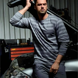 Pánské pyžamo 117/160 Losse 9 CORNETTE - je vyrobené z velmi kvalitní bavlny - grafitové tričko s dlouhými rukávy - ozdobené pruhy - pohodlné jednobarevné dlouhé kalhoty