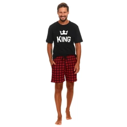 Pánske pyžamo 9952 Doctornap - vyrobené z vysokokvalitnej bavlny - čierne tričko s krátkym rukávom - potlač na prednej strane - kockované šortky s vreckami - certifikát OEKO-TEX Standard 100 Zloženie materiálu: 100% bavlna