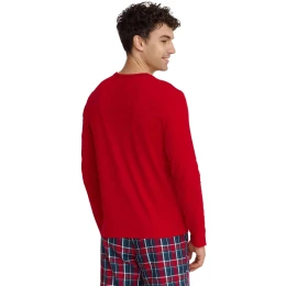 Pánské pyžamo 40950 Glance Henderson - vyrobené z velmi kvalitní a příjemné bavlny - červené tričko s dlouhými rukávy - na přední straně ozdobené barevným potiskem - dlouhé kárované kalhoty