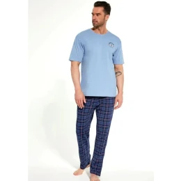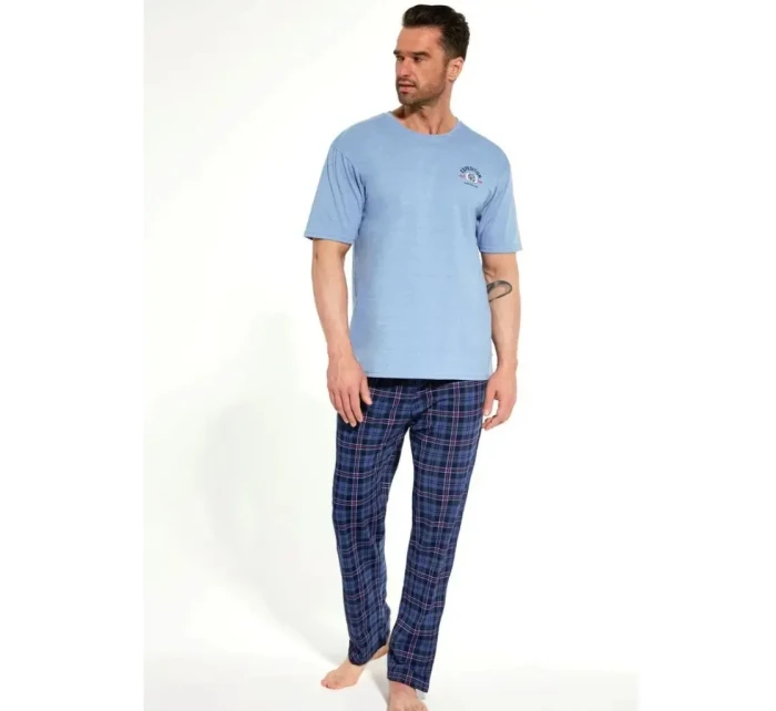 Príjemné a pohodlné pánske pyžamo s krátkym rukávom a dlhými nohavicami značky Cornette. Vrchný diel má okrúhly výstrih a na prednom diele je malý nápis. Vyrobené z kvalitnej bavlny.
