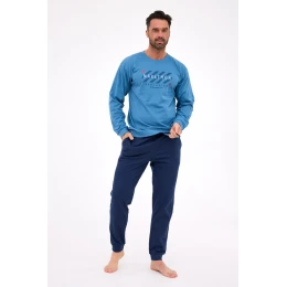 Piżama męska MARATHON to nowoczesny komplet wykonany z wysokiej jakości, 100% bawełny, który zapewnia komfort i swobodę noszenia przez całą noc. Bluza z długim rękawem ozdobiona została kolorowym nadrukiem z przodu, a wygodne ściągacze przy mankietach i u dołu koszulki dodają jej sportowego charakteru. Do zestawu dołączone są jednolite spodnie z długimi nogawkami, wyposażone w praktyczne kieszenie, elastyczną gumkę w pasie oraz troczek do regulacji. Nogawki zakończone są ściągaczami, co gwarantuje idealne dopasowanie i wygodę w każdej pozycji. Piżama zapakowana w pudełko – świetna także na prezent.