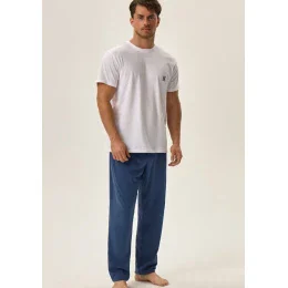 Pánske pyžamo značky Henderson. Pyžamo pozostáva z trička s krátkymi rukávmi. Má okrúhly výstrih s elastickým lemom a na ľavej strane menšie písmeno H. Nohavice sú voľné, s elastickým pásom s nápisom Henderson po celom páse. Nohavice sú ukončené voľne a sú jednofarebné.