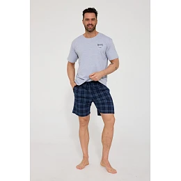 Súpravu dopĺňajú krátke šortky s klasickým károvaným vzorom, ktoré dodávajú pyžamu nadčasový, mužský štýl. V páse je pohodlná elastická gumička s bavlnenou podšívkou, vďaka ktorej šortky dobre sedia bez toho, aby boli obmedzujúce.