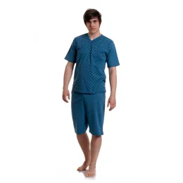 Blůza pyžama má krátké rukávy a výstřih ve tvaru písmene "V". Komplet doplňují jednobarevné kraťasy. Dostupné barvy, které jsou vybírány náhodně: světle modrá, grafitvá, tmavě modrá, šedá.