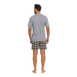 Pánské pyžamo 5153 Doctornap - z vysoce jakostní bavlny - šedé tričko s krátkými rukávy - zdobené potiskem na přední straně - kostkované kraťasy s kapsami - certifikát OEKO-TEX Standard 100