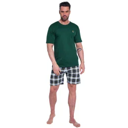 Pánské pyžamo 326/182 Nature 2 CORNETTE - z vysoce jakostní bavlny - zelené tričko s krátkými rukávy - půlkulatý výstřih - ozdobené potiskem na přední straně - kárované kraťasyMateriálové složení: 100% bavlna