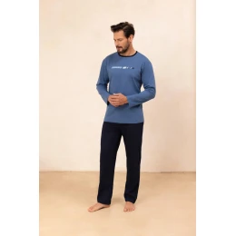 Klasické pánské pyžamo 494 Big J/25 od značky Regina je určeno mužům, kteří ocení jednoduchost, pohodlí a kvalitu. Je vyrobeno ze 100% kvalitní bavlny, je měkké, prodyšné a pohodlné pro klidný spánek. Tričko s dlouhými rukávy má kulatý výstřih a decentní potisk na hrudi, což působí moderně, zatímco dlouhé pevné kalhoty přiléhají k tělu a zajišťují pohodlný pohyb a jsou ideální volbou pro chladnější noci nebo jako pohodlná domácí strój.