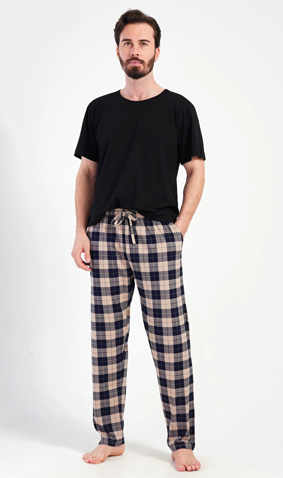 Pánske bavlnené pyžamové nohavice Marian. Kárované nohavice majú elastický pás, šnúrku na stiahnutie a praktické vrecká. 100 % bavlnená džersejová tkanina je mäkká a príjemná na dotyk.