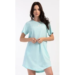 Dámske bavlnené domáce šaty s krátkym rukávom Wonderful. Domáce šaty sú jednofarebné s okrúhlym výstrihom a vreckami zdobenými obrázkom kvetu a nápisom "Wonderful" na hrudi. Použitý bavlnený materiál je mäkký a pružný na dotyk. Šaty sú pohodlné, vhodné na spanie aj na každodenné nosenie.