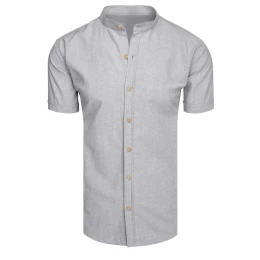 Koszula męska z krótkim rękawem i kołnierzem typu stójka to doskonała propozycja na sezon letni. Wykonana z przewiewnego materiału, zapewnia komfort nawet w cieplejsze dni. Klasyczne zapięcie na guziki i minimalistyczny fason slim fit sprawiają, że model świetnie sprawdza się w codziennych stylizacjach. Idealna do chinosów, jeansów czy szortów.
