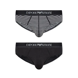 Pánske slipy 2PACK 111733 3F542 16844 čiernosivé s prúžkom - Emporio Armani