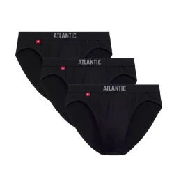 Pánske slipy 3 pack 094 black Atlantic - čierne - vyrobené z kvalitnej bavlny - 3 ks v balení - pohodlná guma s nášivkou ATLANTIC - športový strih - výhodné balenie 3 ks