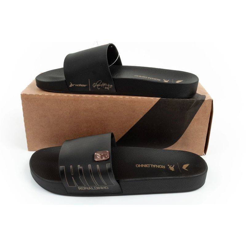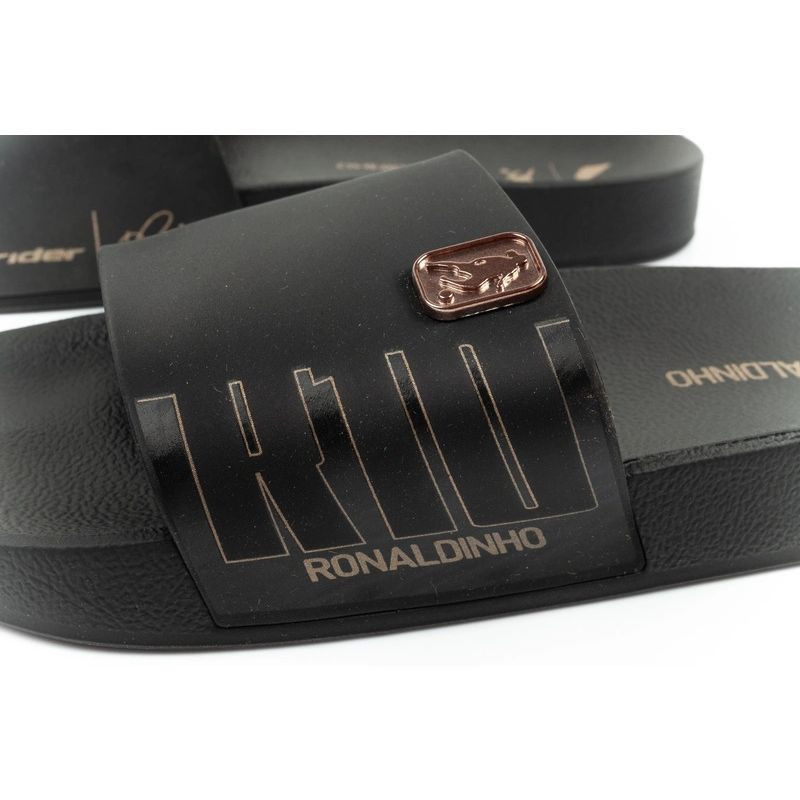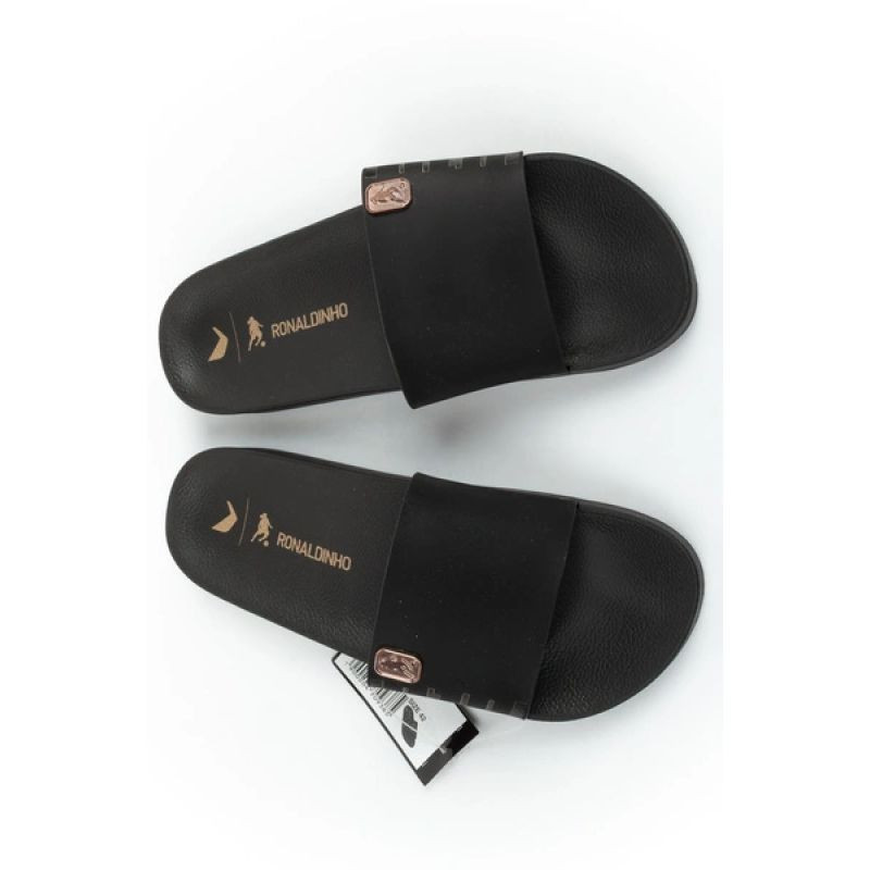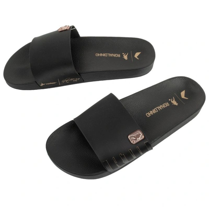 Široký remienok s logom inšpirovaným Ronaldinhom priťahuje pozornosť a zdôrazňuje športový štýl, zatiaľ čo tvarovaná stielka podporuje prirodzenú polohu chodidla.