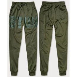 Pánske teplákové nohavice v khaki farbe s potlačou (8K191)