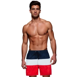 Tieto pánske plavky s elastickým pásom a nastaviteľnou šnúrkou sú pohodlnou voľbou na leto. Výrazné trojfarebné pruhy im dodávajú výrazný a štýlový plážový charakter. Pohodlné bočné vrecká a zadné zapínanie na suchý zips zabezpečujú funkčnosť. Ideálne na aktívne aktivity na pláži a pri bazéne.