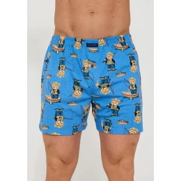 Bavlněné volné trenýrky s veselým motivem od značky Cornette. Trenýrky mají obšitou gumu s nášivkou Cornette na přední části a propínání na knoflíček.