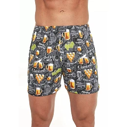 Bavlněné volné trenýrky s veselým motivem od značky Cornette. Trenýrky mají obšitou gumu s nášivkou Cornette na přední části a propínání na knoflíček.