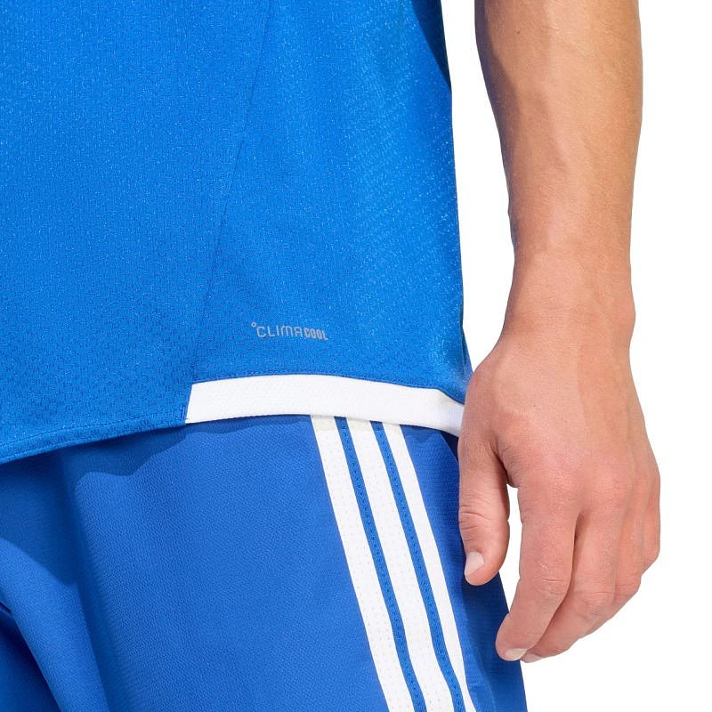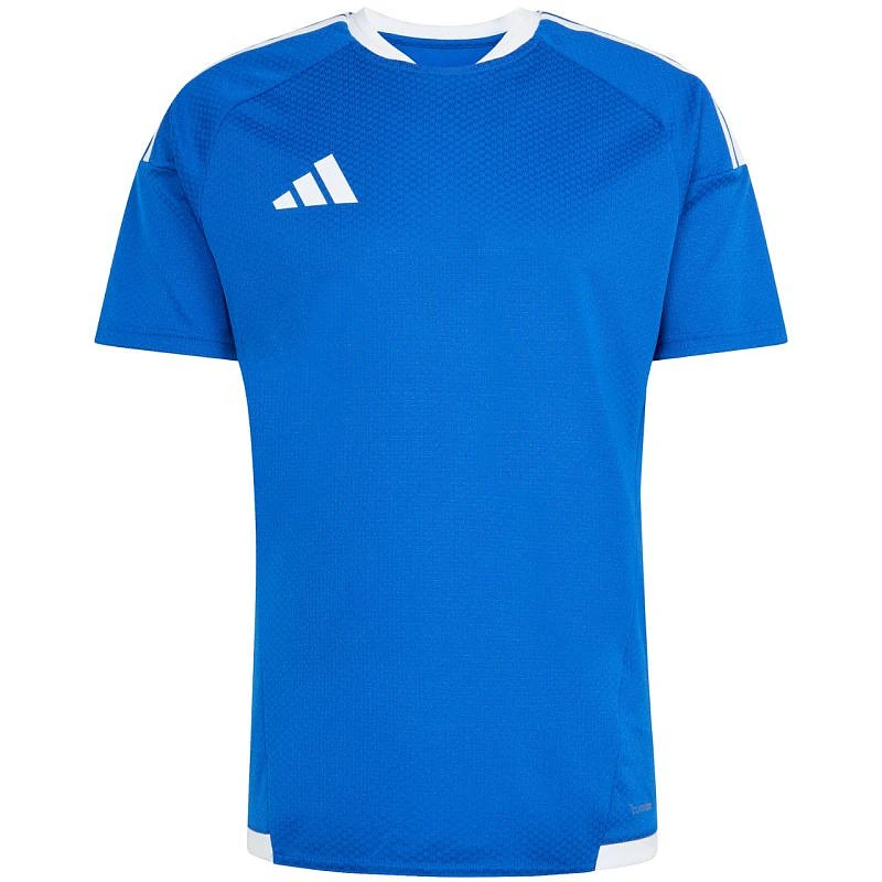 Pánské soutěžní zápasové tričko adidas Tiro 26 modrobílé KA6172 Pánské tričko adidas je ideální zápasové tričko na fotbal. Přizpůsobený střih. Kulatý výstřih s měkkým límcem. Síťované panely. Technologie Climacool odvádí a rozptyluje pot. Recyklovaná vlákna. Logo s tepelným přenosem. Pruhy na ramenou. Materiál: 100% recyklovaný polyester.