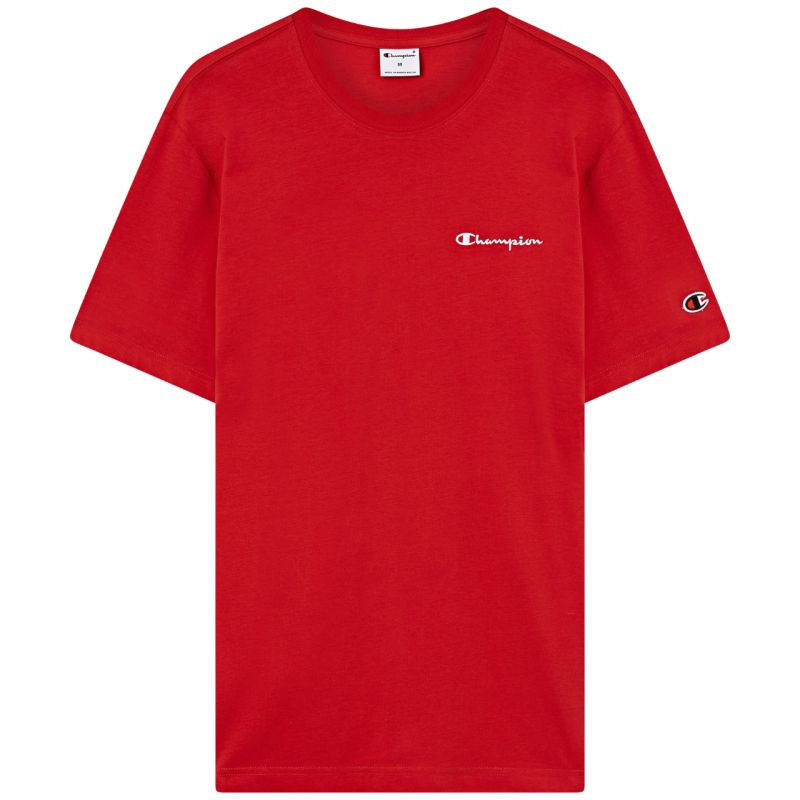 Pánske tričko Champion SS Tee Red 221798 RS067 Pánske tričko Champion je ideálne na každodenné nosenie. Štandardný strih. Malé logo Champion na hrudi a ľavom rukáve. Zaoblený výstrih s rebrovanými manžetami. Mäkký materiál. 100% bavlna.