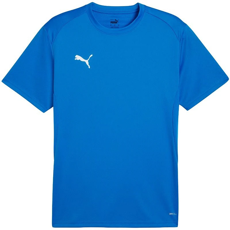 Koszulka męska Puma TeamGoal Jersey niebieska 658636 02 Koszulka męska Puma najlepiej sprawdzi się podczas rozgrywek piłkarskich. Pochodzi z linii teamGoal. System dryCell odprowadza nadmiar wilgoci pozostawiając skórę suchą. Siateczkowa struktura po bokach zwiększy poziom oddychalności. Tradycyjny krój. Subtelne logo. Materiał: 100% poliester z recyklingu