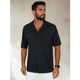 Koszula męska z oddychającej wiskozy, zapinana na guziki i wykończona klasycznym kołnierzem, to połączenie wygody i stylu. Krótki rękaw i dwie kieszenie na piersi tworzą funkcjonalną całość. Idealna do wiosennych outfitów – zarówno codziennych, jak i bardziej dopracowanych.