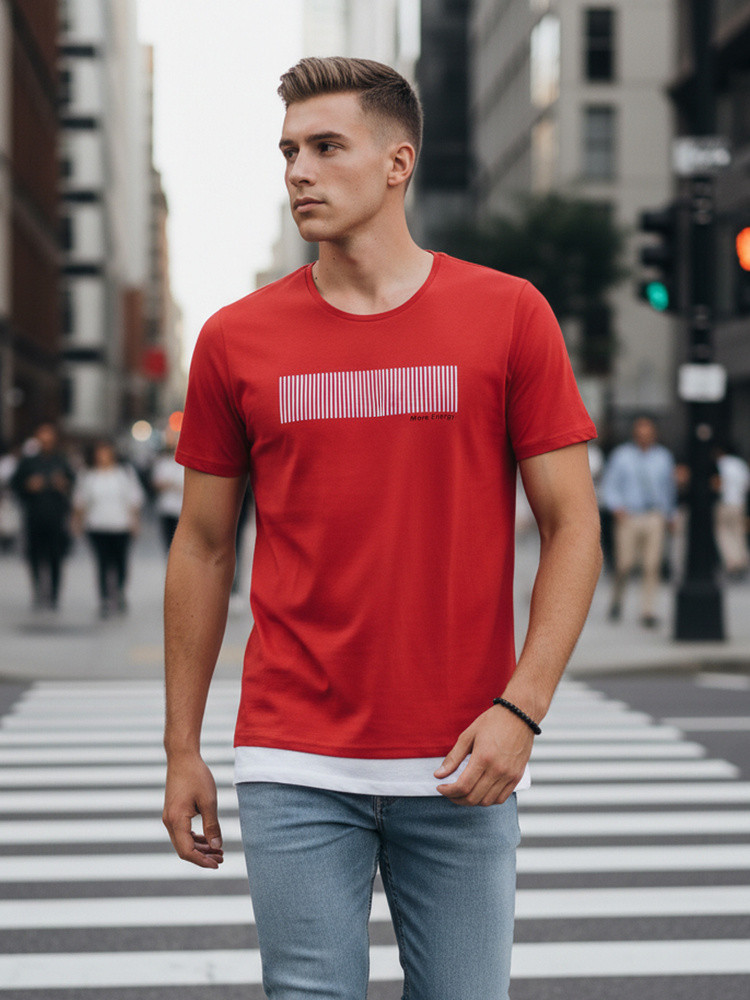 Pánske tričko s potlačou červené FashionStreet RX4651