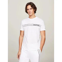 Ležérní oblečení může být stále stylové, jak dokazuje toto tričko z organické bavlny s monotypem loga Hilfiger a kontrastními pruhy.