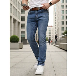 Pánske úzke džínsové nohavice s opaskom modré FashionStreet UX4490