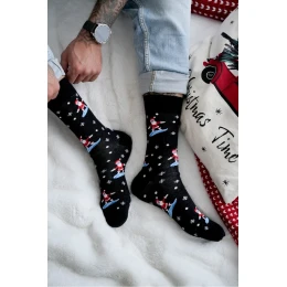 Vianočná nálada od hlavy až po päty! Pánske vianočné ponožky "Santa on Snowboard" 1290.032 od značky Milena v sebe spájajú pohodlie a humor v zimnom štýle. Sú vyrobené z kvalitnej bavlny (75 %) s polyamidom (20 %) a elastanom (5 %) a poskytujú vynikajúcu priedušnosť, pružnosť a odolnosť.