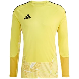 Pánský soutěžní brankářský dres adidas Tiro 26 s dlouhým rukávem žlutý KB5250 Tento pánský brankářský dres adidas vám umožní soustředit se výhradně na zápas. Systém Climacool vás pomůže udržet v chladu a suchu. Přizpůsobený střih se zaobleným výstřihem. Dlouhé raglánové rukávy. Pruhy na ramenou a decentní logo adidas na hrudi. Geometrická grafika. Materiál: 100% recyklovaný polyester.