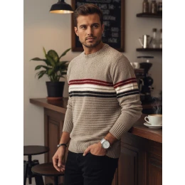 Pridanie recenzie k Pánsky pruhovaný sveter svetlohnedý FashionStreet WX2282