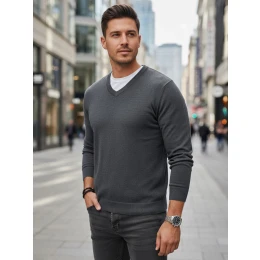 Pánske svetre s výstrihom do V WX2316 svetlo sivá