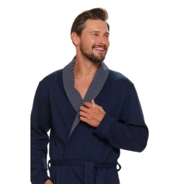 Pánský župan 5283 Doctornap - tmavě modrá barva - vyrobený z velmi kvalitního a příjemného materiálu - s šálovým límcem - s kapsami - vázání v pase - certifikát OEKO-TEX Standart 100