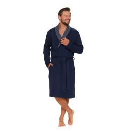 Pánsky župan 5283 Doctornap - tmavomodrý - z kvalitného a príjemného materiálu - so šálovým golierom - s vreckami - zaväzovanie v páse - certifikát OEKO-TEX Standard 100