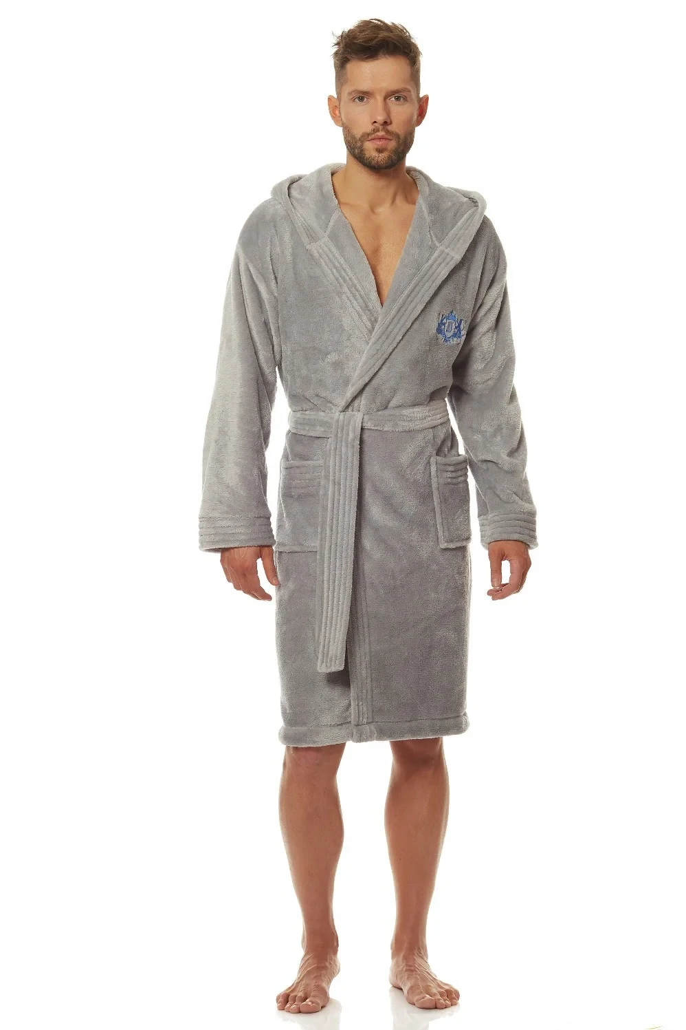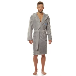 Pánský župan s kapucí, který je vyrobený z měkké a příjemné tkaniny.