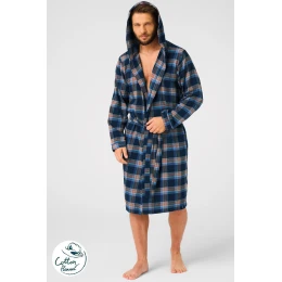 Pánsky župan MGL 431 B25 je dokonalou kombináciou pohodlia a domácej elegancie. Je vyrobený z jemného, mäkkého károvaného úpletu, dokonale obopína telo a poskytuje teplo počas chladnejších dní. Klasický šálový golier mu dodáva elegantný, nadčasový vzhľad, zatiaľ čo praktické vrecká na bokoch mu dodávajú funkčnosť. Viazanie v páse umožňuje dokonalé prispôsobenie a pohodlné nosenie. Je to župan, ktorý bude ideálny na rannú kávu a večerný domáci relax.