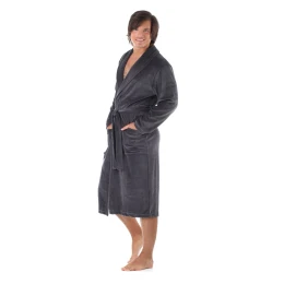 Ideálny župan na relax doma, večerný odpočinok, ale aj na cestovanie alebo do nemocnice. Ľahký pletený zamatový velúr sa prispôsobí vašej postave bez toho, aby obmedzoval pohyb. Župan má praktickú dĺžku po kolená, dve priestranné vrecká a opasok na previazanie. Šálový golier dodáva županu elegantný vzhľad. Tento klasický župan spája maximálne pohodlie s praktickosťou a nadčasovým štýlom. Pri správnej starostlivosti vám bude slúžiť dlhé roky.