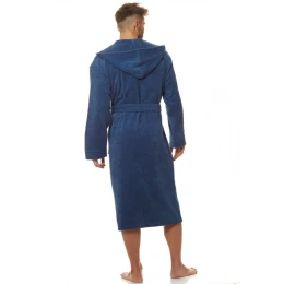 Dlouhý pánský župan s kapucí. Župan je vyrobený z měkké froté tkaniny a v pase se zavazuje. Na bocích jsou vnějších kapsy. Model je měkký a příjemný na dotyk a při nošení je pohodlný a komfortní.