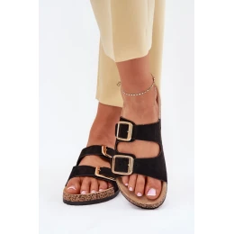 Dámske sandále z ekokože na korkovej podrážke sú štýlovou voľbou na teplé dni. Dva nastaviteľné remienky so zlatými prackami im dodávajú elegantný charakter a zároveň zaručujú pohodlie a dokonalé prispôsobenie. Skvele sa hodia na každodenné nosenie, spájajú pohodlie s moderným vzhľadom, sú ideálne na prechádzku alebo dovolenku.
