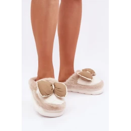 Kožešinové pantofle s mašlí béžové model 21681731 - Boto