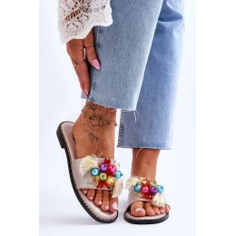 Pantofle s ozdobnými korálky model 21619239 Nude - S.Barski