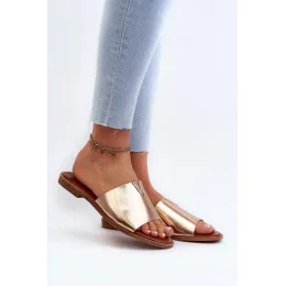 Dámske žabky z ekologickej kože. Zlatý prvok dodá vášmu letnému stylingu šmrnc. Sú osadené na plochom podpätku. Tento model bude ideálnou voľbou na mnohé príležitosti!