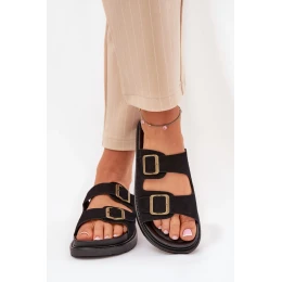 Štýlové papuče vyrobené z eko semišu. Osadené na platforme, ktorá spája pohodlie s módnym vzhľadom. Remienky s prackou zabezpečujú ideálne prispôsobenie a tvarovaná stielka zaručuje pohodlie počas celého dňa. Tieto papuče budú skvelou voľbou na letné dni, hodia sa k šatám aj nohaviciam.
