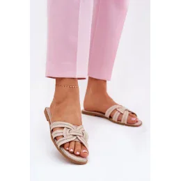 Klasické ploché dámske sandále vyrobené z kombinácie ekokože a textilného materiálu, ktoré spájajú pohodlie s nenápadným štýlom. Pletené remienky v prednej časti dodávajú sandálom ľahký, moderný charakter. Tieto sandále sú ideálne na mnohé letné stylingy, hodia sa k šatám, ako aj k nohaviciam alebo šortkám.