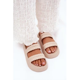 Dámske papuče vyrobené z ľahkej penovej tkaniny, osadené na platforme, ktorá poskytuje pohodlie počas celého dňa. Dva remienky v prednej časti zaisťujú stabilitu a bezpečnosť pri chôdzi. Tieto papuče sú ideálne na horúce dni, sú skvelou voľbou na dovolenku, čas strávený pri bazéne alebo na pláži a spájajú funkčnosť s pohodlím.